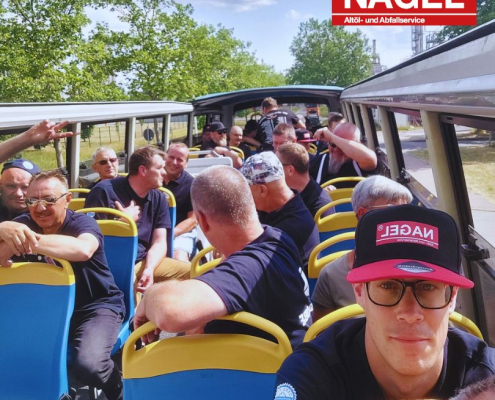 Mitte Juni 2023 stand unser „Fahrerevent“ an. Zusammen mit den Kollegen unseres Schwesterunternehmens Baufeld haben wir Puraglobe in Elsteraue (bei Leipzig) besichtigt. Hier, in der Raffinerie unserer Muttergesellschaft, werden die gesammelten Altöle zu neuen Basisölen aufbereitet. Im Nachgang durften wir das Leipziger Stadion besichtigen. Unser Geschäftsführer Herr Schüppel hat sich Zeit genommen, um über den aktuellen Status von Altöl-Recycling zu informieren. 🏭💚
