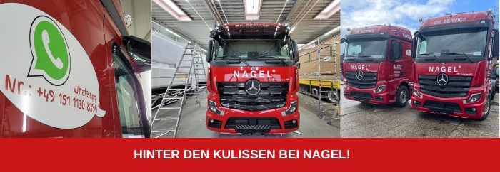 🚛✨Hinter den Kulissen bei Nagel! Erlebe, wie zwei unserer LKWs bei Göwert GmbH mit dem markanten Nagel-Branding beklebt werden.